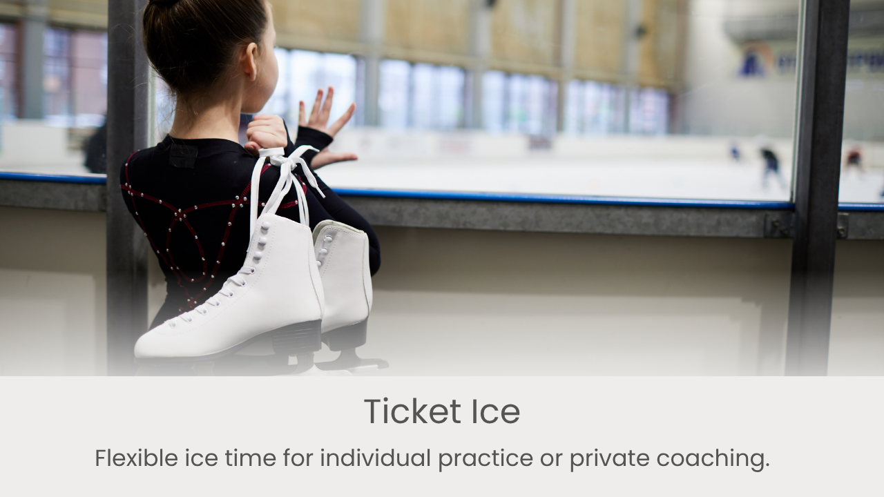Ticket Ice – Flexible ice time for individual practice or private coaching (registration required).